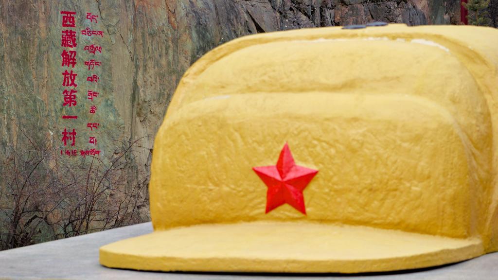 岗托村红色主题雕塑(2月8日摄)。新华社记者 党黎 摄