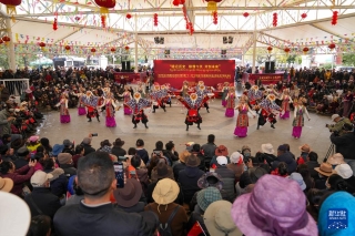 3月28日,演员在拉萨市宗角禄康公园内举办的西藏百万农奴解放纪念日群众演出活动上载歌载舞。新华社记者 丁增尼达 摄