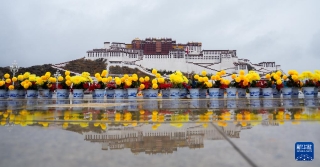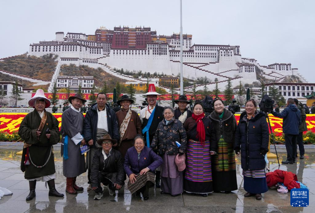 3月28日,群众代表在布达拉宫广场合影留念。新华社记者 晋美多吉 摄