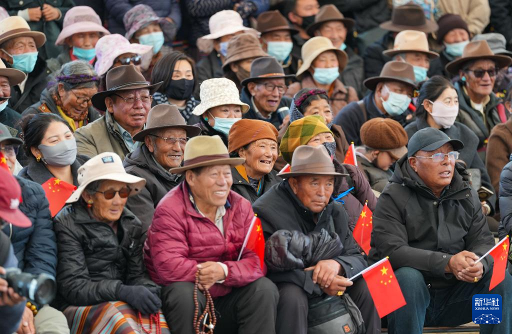 3月28日,人们在拉萨市宗角禄康公园观看西藏百万农奴解放纪念日群众文艺演出活动。新华社记者 晋美多吉 摄
