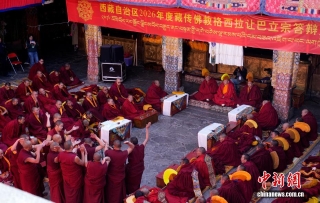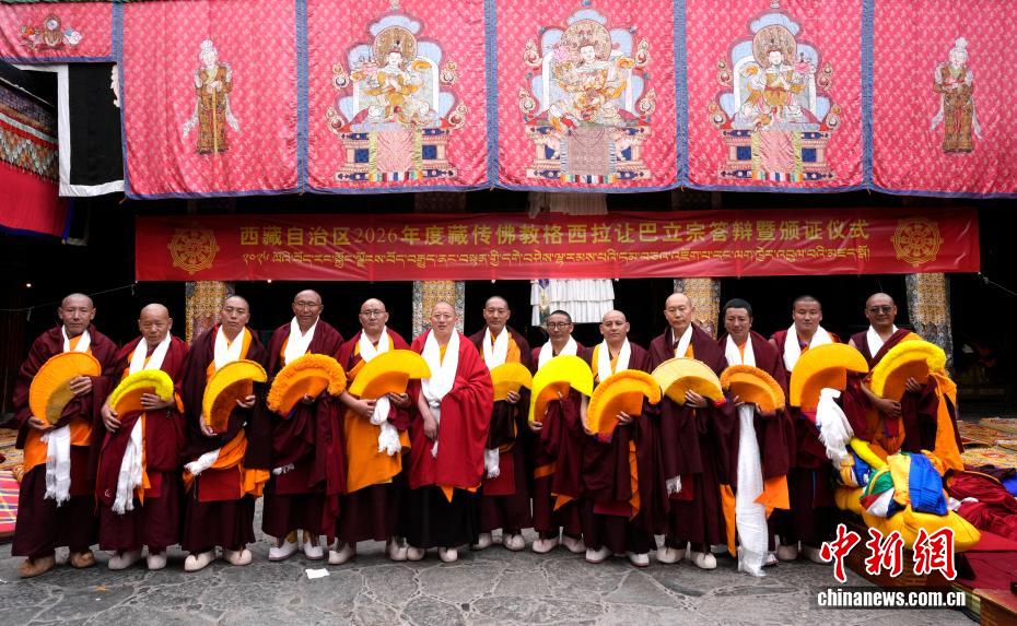 4月5日,2026年度藏传佛教格鲁派学经僧人考核晋升格西拉让巴学位立宗答辩暨颁证仪式在拉萨大昭寺举行。13名考僧通过立宗答辩,晋升藏传佛教格西拉让巴学位。格西拉让巴学位是藏传佛教格鲁派显宗传统教育最高学位。截至目前,共215名高僧获得格西拉让巴学位。