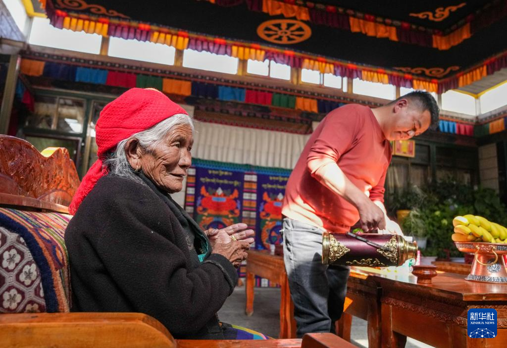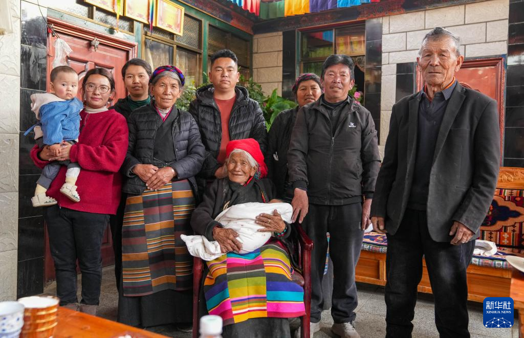 如今的生活发生了翻天覆地的变化。嘎多一家购买的手扶拖拉机已更换成了小型货运卡车,这几年又添置了小汽车,出行、生产愈发便捷。嘎多老人住在宽敞明亮的两层藏式民居里,儿孙绕膝,还能按时领取补助,看病吃药也能享受报销政策。这样衣食无忧、其乐融融的幸福日子,让老人满心欣慰与感激。