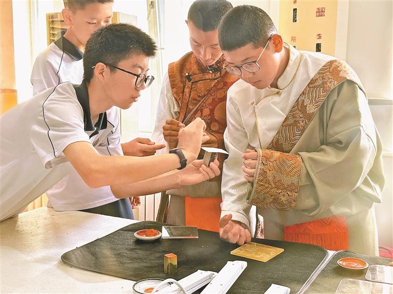 书信和研学活动让孩子们“走出去”看世界,校园里的校本课程则把中华文化的根“扎进来”。
