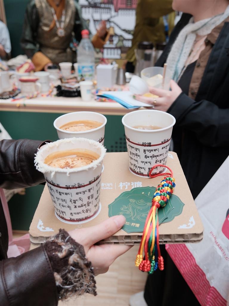 由第十一届陆家嘴国际咖啡文化节组织的“遇见中国”展团集体亮相,集中展示十余家中国本土优质咖啡品牌,覆盖地方特色、产区供应链与咖啡文创等领域。在西藏自治区对外文化交流协会的指导下,作为展团里的高原亮色,西藏本土咖啡与藏式文创携手登场,柠渡咖啡携藏式特调咖啡亮相,西藏旅投文创公司带来“羌塘·秘境”“格桑花——罗布林卡礼物”等咖啡杯系列文创产品同步展出,以“藏文化+咖啡”的融合形态,在文化与味觉的交汇中碰撞出独特火花。