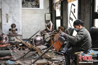 4月21日,西藏雪堆白技工学校罗布顿珠老师在认真地进行金属锻造。中新社记者 贡嘎来松 摄