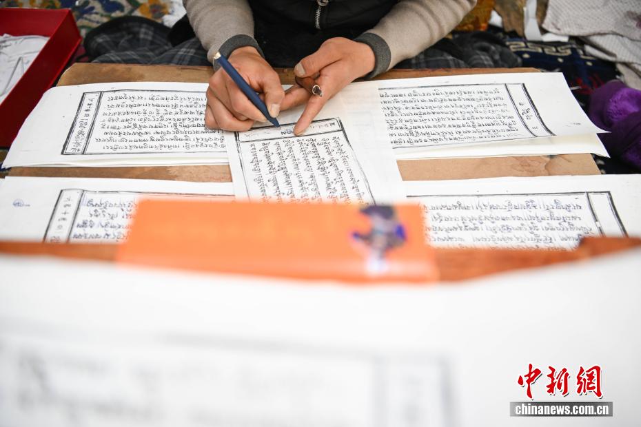 4月21日,西藏雪堆白技工学校手工艺人在印刷《大藏经》。中新社记者 贡嘎来松 摄