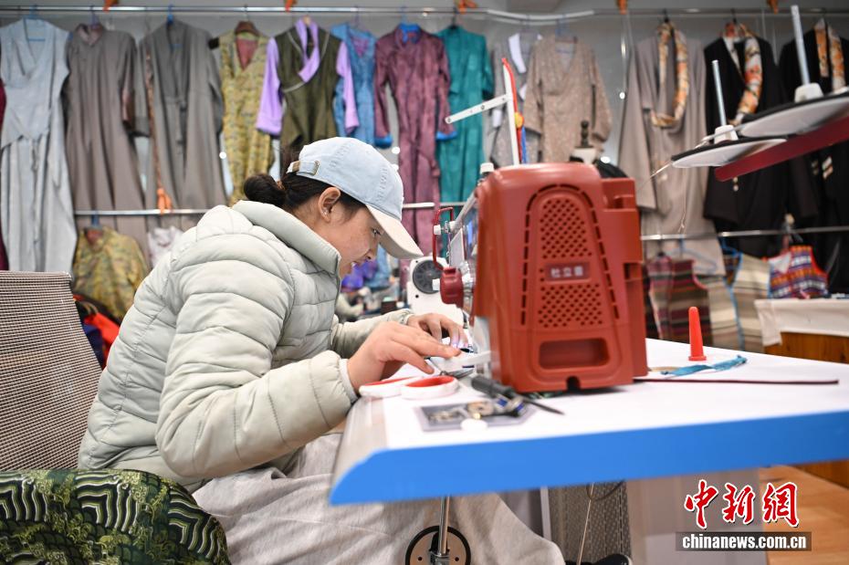 4月21日,西藏雪堆白技工学校学生在制作藏装。中新社记者 贡嘎来松 摄