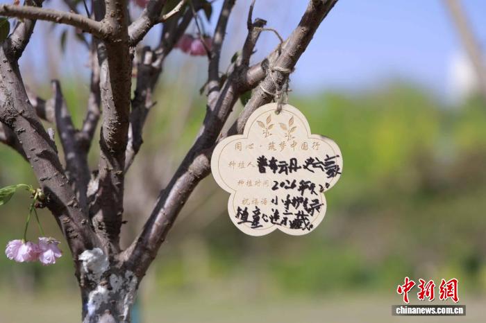 图为栽好树苗后,京藏两地青少年在树牌上共同写下彼此的名字。(中国宋庆龄青少年科技文化交流中心 供图)
