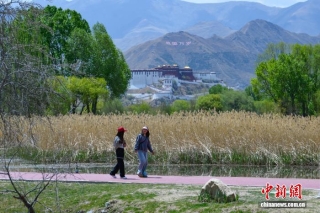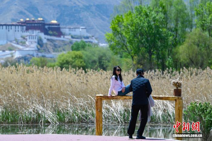 4月26日,正值周末,众多拉萨市民前往拉鲁湿地,沿步道缓步游览、亲近自然,悠然邂逅春日美景。中新社记者 贡嘎来松 摄