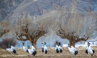 西藏南木林:雅江河畔邂逅黑颈鹤