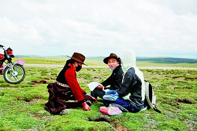 2022年8月,在青海省果洛藏族自治州玛多县黄河乡,中国科学院科技战略咨询研究院科研团队对三江源国家公园管护员进行问卷调查。魏钰摄/光明图片