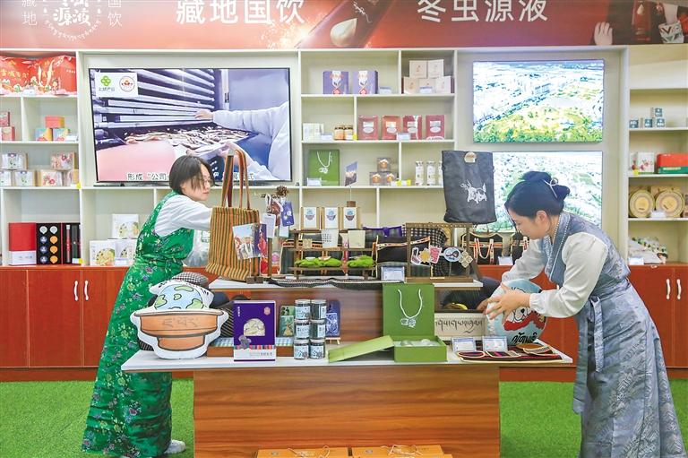巴宜区供销合作社工作人员整理文创产品。 记者 谢筱纯 王珊 摄