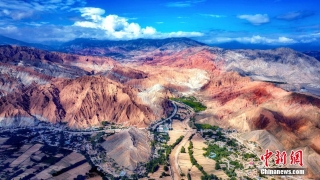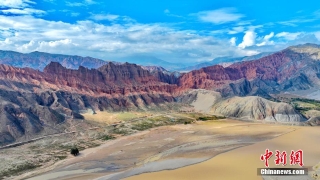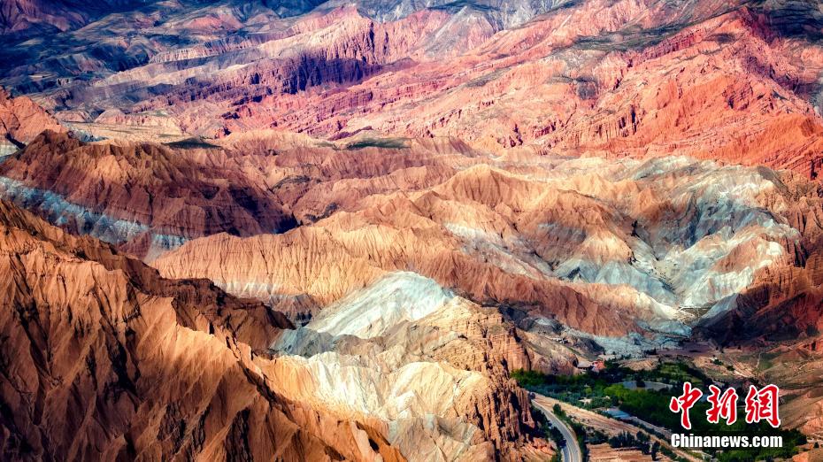 航拍图为阿什贡七彩峰丛的丹霞地貌。(无人机照片)宋忠勇 摄