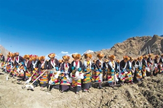 清晨,阳光洒满田野,村民身着节日盛装,手捧“切玛”(五谷丰登斗),唱起祈愿歌,互敬青稞酒,脸上洋溢着喜悦与期盼。随着长者的祈福声响起,铁犁缓缓翻开沉睡的土地,妇女们将手中的种子轻轻撒下,仿佛将希望播撒在这片沃土中。紧接着,拖拉机手们驾驶着现代化的农机驶入田间,银色的犁头在阳光下闪耀,与传统的木犁并肩作业,轰鸣声与欢笑声交织在一起,奏响春耕的序曲。