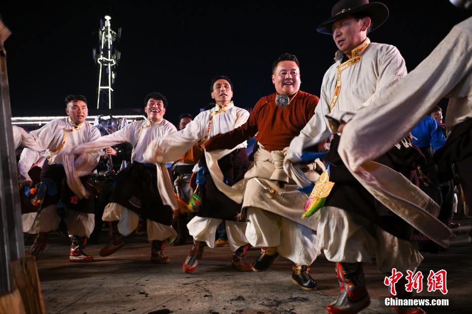 图为篝火锅庄晚会现场。中新社记者 贡嘎来松 摄