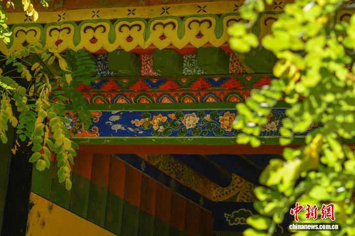 图为罗布林卡内树木叶片与藏式建筑相映成景。贡确 摄