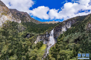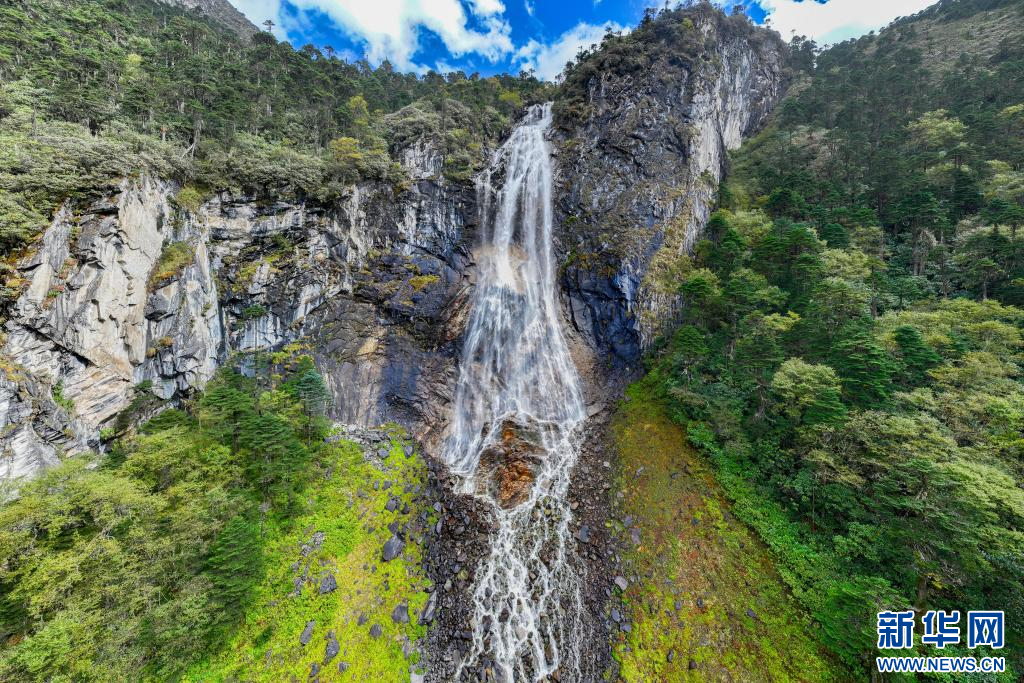 10月10日拍摄的拉郊瀑布(无人机照片)。新华网 旦增努布 摄