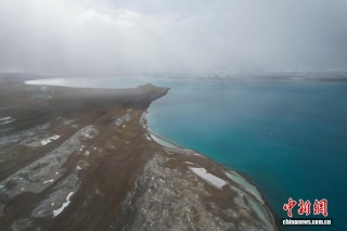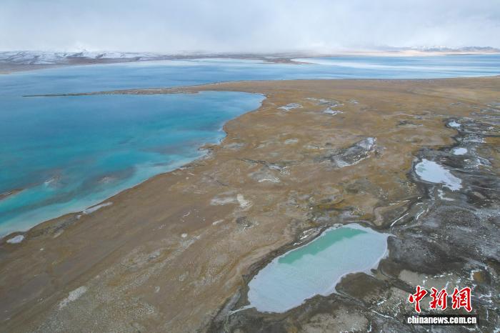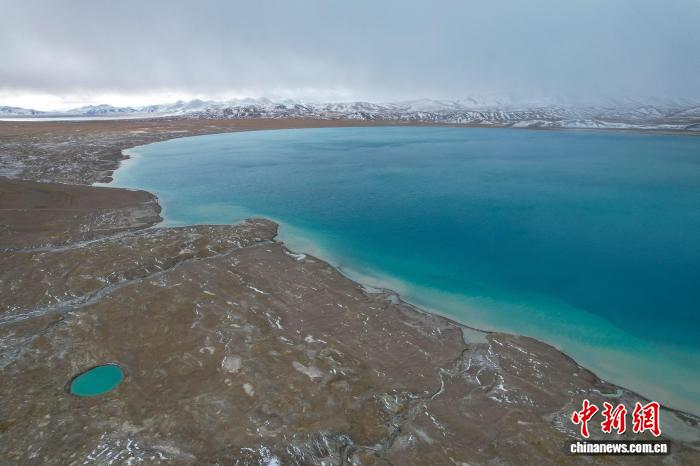 美马错位于西藏自治区阿里地区日土县与改则县交界处,湖面海拔4920米,面积140.5平方公里。据悉,该湖地处昆仑山南麓。近日,中新网记者自驾新藏公路北线途经该湖,航拍画面显示,湖泊呈带状铺展,湖水自岸边向中心颜色渐次加深,远处与天色交融成墨绿。周边群山覆雪,湖泊、荒滩、雪山构成一幅天地共绘高原蓝的美丽景象。