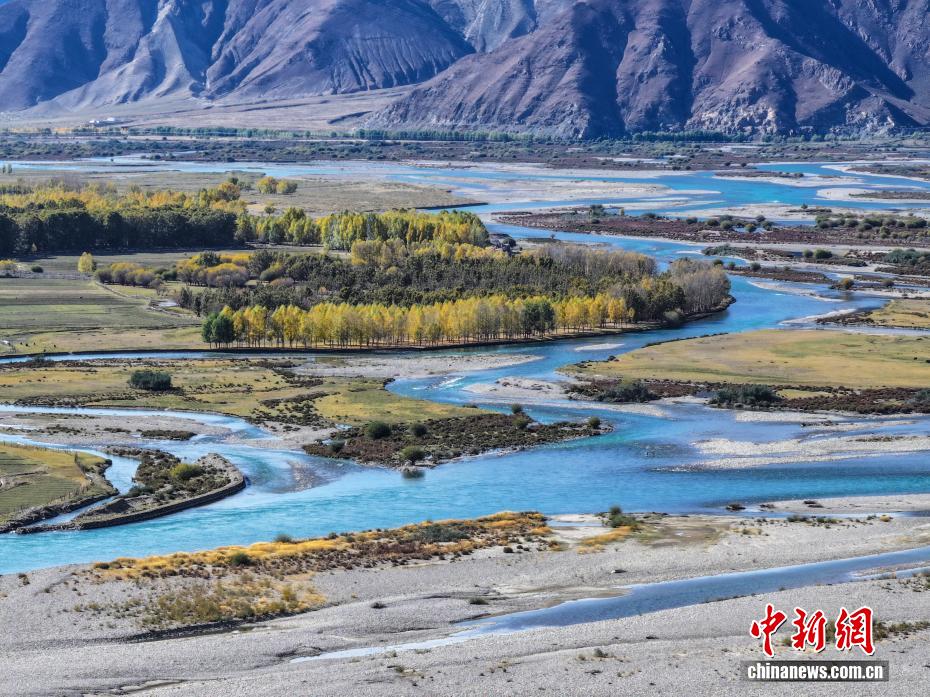 10月15日,西藏自治区拉萨市墨竹工卡县境内的拉萨河两岸进入最美秋季,澄澈河水映衬着蓝天白云,沿线村庄与拉萨至林芝高等级公路相映成趣,美景如画。