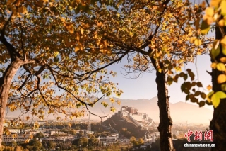 10月22日清晨,薄雾尚未散尽,西藏拉萨团结公园的黄叶与布达拉宫相映成趣,勾勒出高原秋日的独特画卷。中新社记者 贡嘎来松 摄