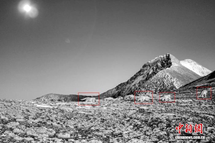 2024年8月,拉萨乃朗谷红外相机首次记录到雪豹“拉姆”带“三娃”出行。(乃朗生态文化保护中心供图)