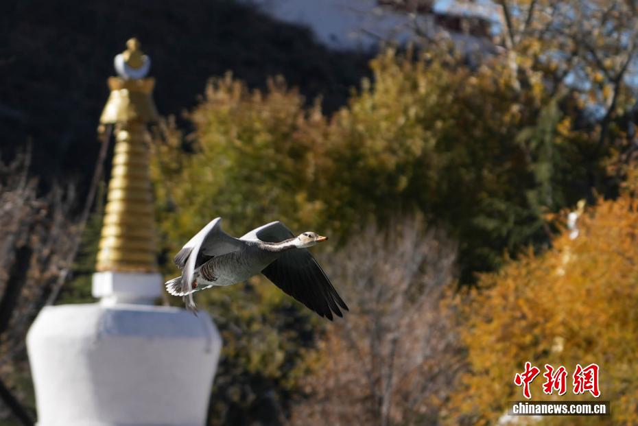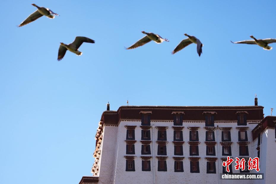 图为斑头雁与布达拉宫同框。贡确 摄