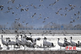 11月26日,位于西藏自治区拉萨市林周县的黑颈鹤自然保护区内,大量越冬的黑颈鹤在卡孜水库、农田、湿地里觅食、嬉戏。林周县位于拉萨河上游及澎波河流域,是黑颈鹤的主要越冬地之一。