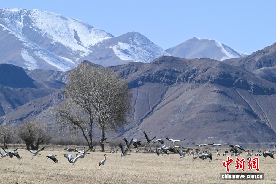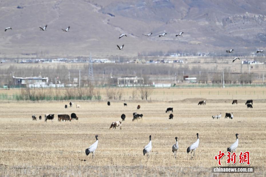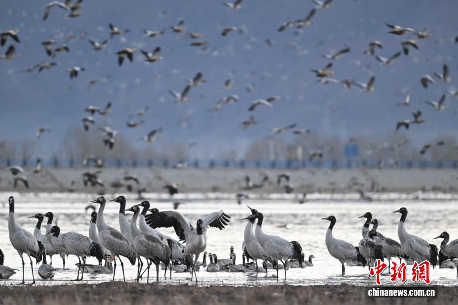 越冬黑颈鹤“做客”西藏林周 绘就生态乐园 中新社记者 贡嘎来松 摄