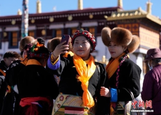 12月1日,西藏拉萨的妇女们盛装来到拉萨大昭寺广场,迎接“仙女节”到来。“仙女节”即吉祥天母节,藏语称“白来日追”。