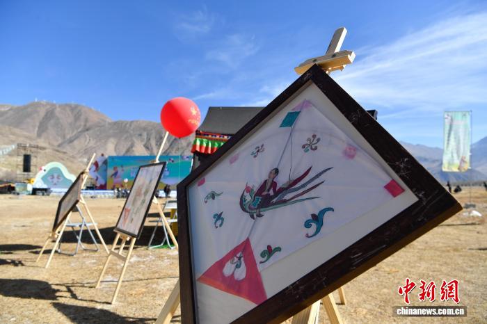图为开幕式上的风筝画展。贡嘎来松 摄