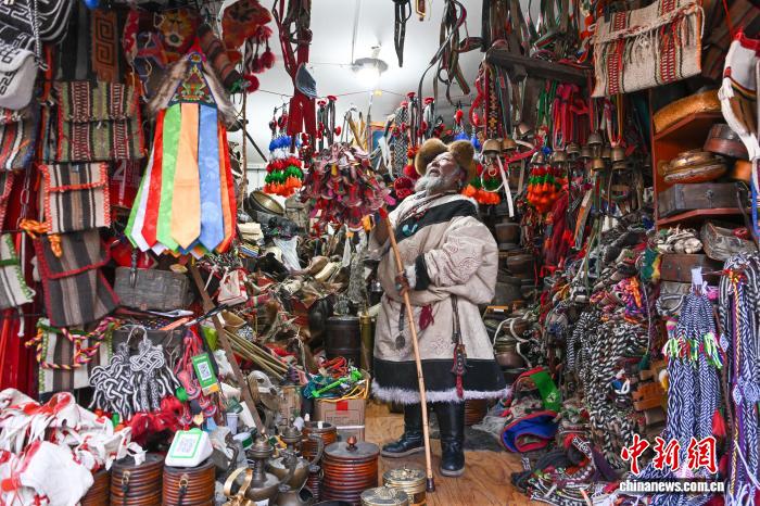 12月9日,西藏拉萨市八廓街冲赛康旁的背阴巷口,55岁店主次仁罗布的藏式老物件小店热闹非凡。不足30平方米的空间里,乌朵、马包、藏式氆氇侧挂包等好物琳琅满目,既有时光沉淀的老物件,也有手艺人新制精品。小店吸引本地民众、年轻人及游客纷纷选购,生意红火。