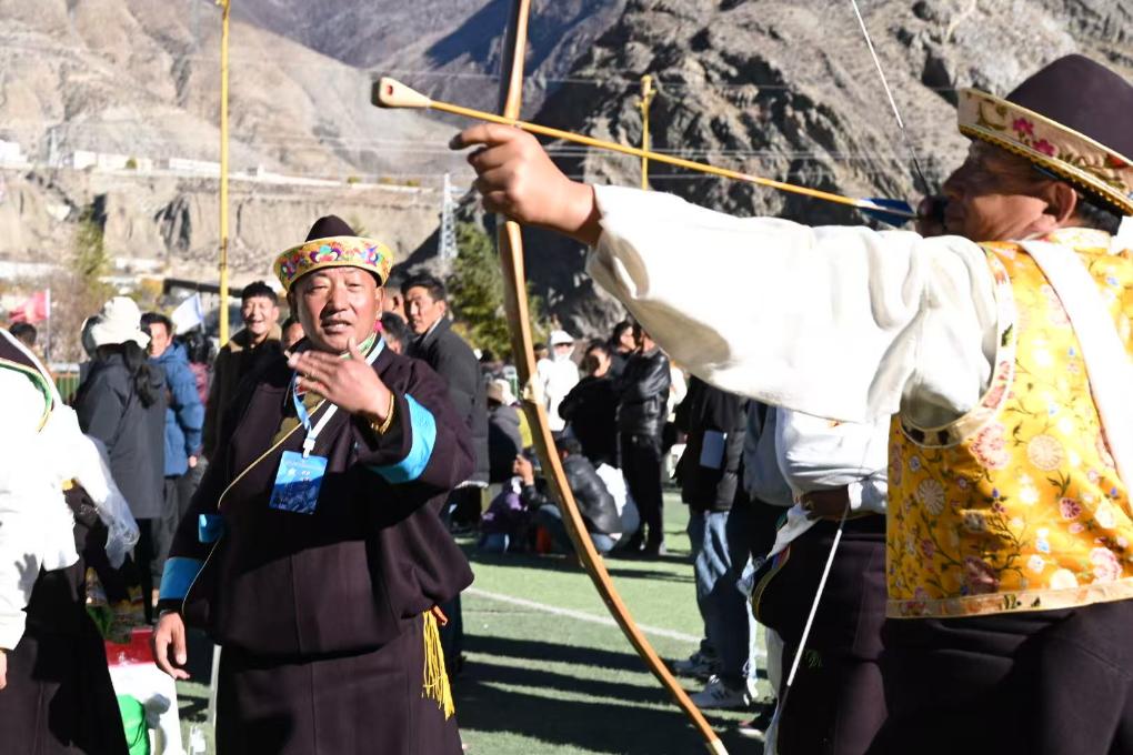 巴鲁(左)在第十届西藏自治区林芝响箭比赛中。新华社发(刘蒙青 摄)