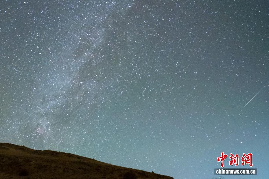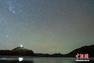 图为13日深夜,西藏羊湖畔,一颗流星划过。中新社记者 江飞波 摄