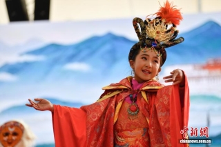 图为群众音乐会表演少儿藏戏《文成公主》。中新社记者 贡嘎来松 摄