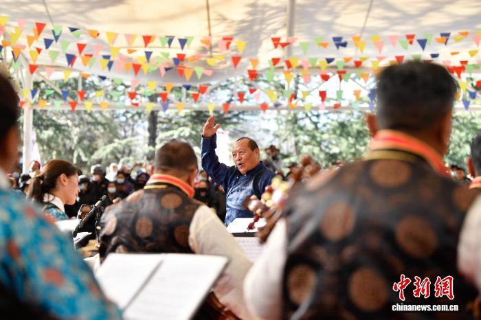 图为群众音乐会,民乐合奏《夏尔巴的歌声》精彩上演。中新社记者 贡嘎来松 摄