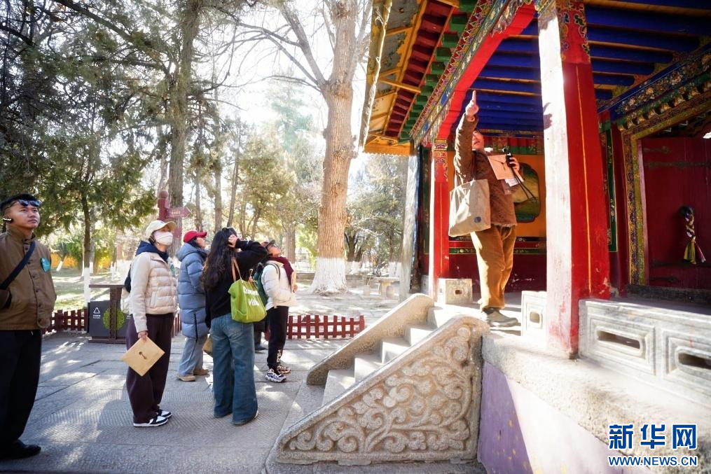 在常规游览之外,通过“专家分享+沉浸式漫游”的方式,市民游客还体验了一场文化深度研学。他们在主题讲座中了解罗布林卡壁画背后的历史脉络和文化价值,在沉浸式探索路线上寻找古建中的“瑞兽”雕刻,古老遗产在专业讲解和现场互动中焕发生机。
