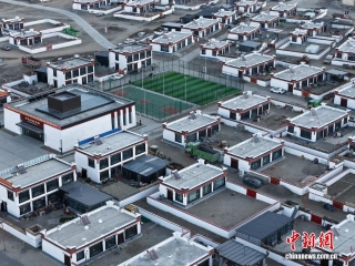 图为重建后的森嘎村一角。(无人机照片)中新社记者 贡嘎来松 摄