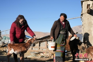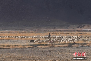 图为森嘎村村民在放羊。中新社记者 贡嘎来松 摄