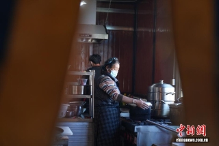 图为森嘎村村民在自家灾害重建的新房里经营茶馆,烟火气十足。中新社记者 贡嘎来松 摄