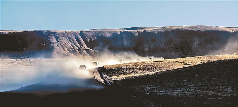 图为巡护队员们迎着清晨的阳光出发。通讯员 格桑 摄