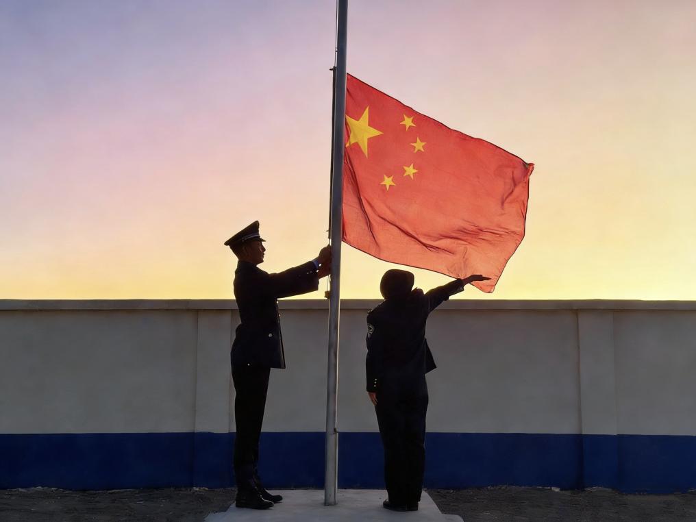 5373米,高原的新年从一声呐喊开始。在海拔最高的边境派出所,民警李天娇右臂挥出弧线,新警贡桑让珠屏息攥紧旗绳。