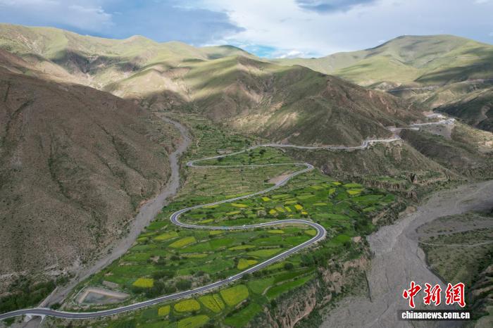 2025年7月15日,航拍西藏自治区拉萨市曲水县境内的岗巴拉山盘山公路。(无人机画面)中新社记者 江飞波 摄