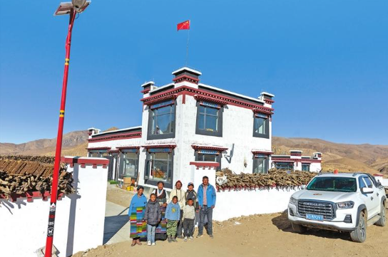 在昂仁县卡嘎镇萨律村,村民扎西加措一家正忙着布置新家。屋内,传统的藏式彩绘已经完成;屋外,新定制的家具正一件件搬入。