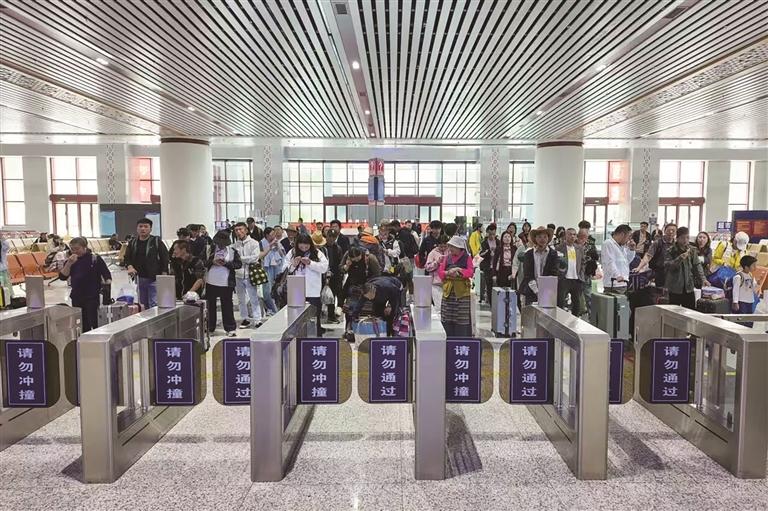 林芝火车站出行的旅客。图由旦增旺姆提供