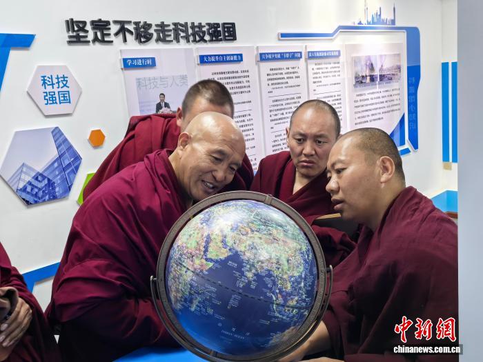 图为僧人在馆内学习科普知识。曲桑 摄