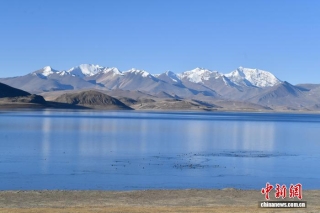 1月18日,沉错水域湖岸的雪山风光。中新社记者 贡嘎来松 摄
