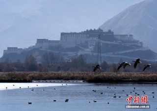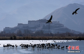 1月18日,栖息在西藏拉萨拉鲁湿地国家级自然保护区的候鸟。中新社记者 李林 摄