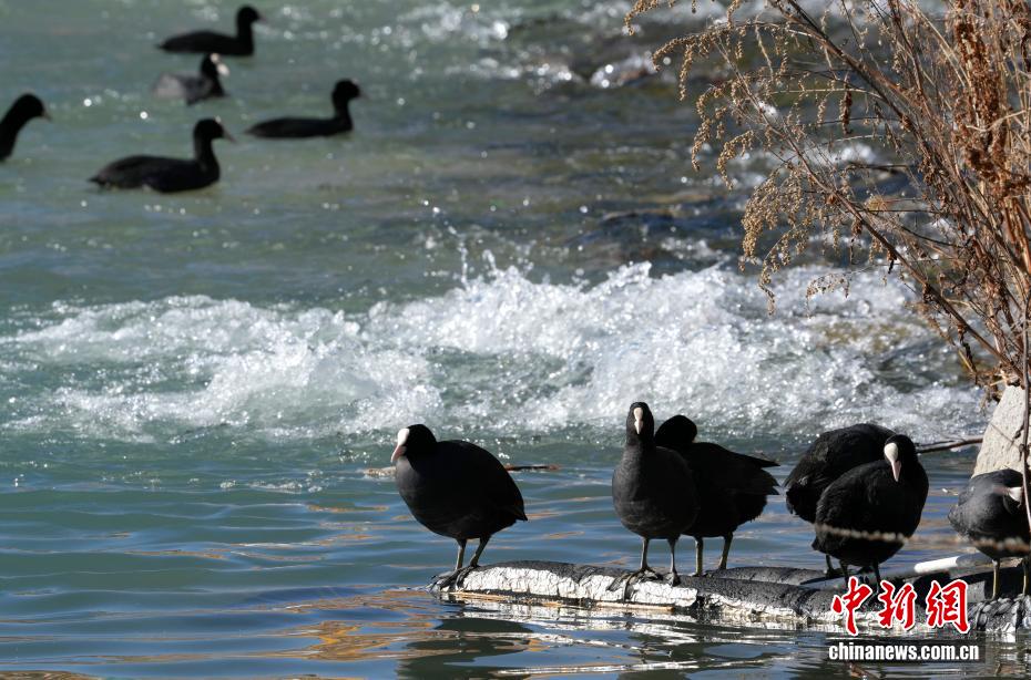 1月18日,栖息在西藏拉萨拉鲁湿地国家级自然保护区的骨顶鸡。中新社记者 李林 摄