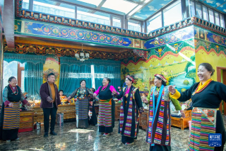 1月20日是西藏日喀则农家新年初二。日喀则市桑珠孜区聂日雄乡楚松村村民喝着青稞酒,吃着牛羊肉,载歌载舞喜过农家新年。