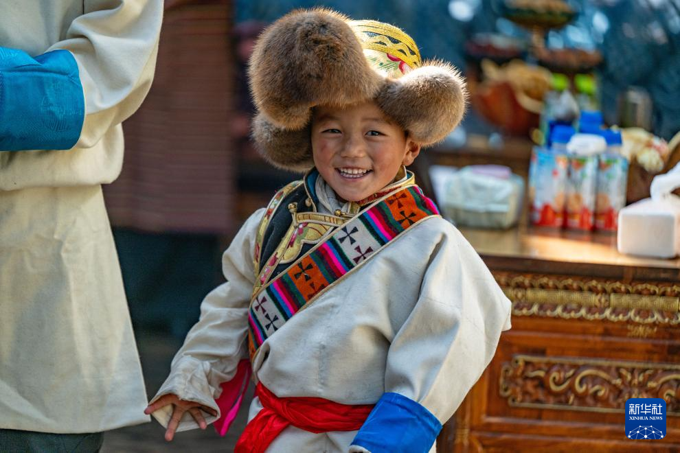 这是日喀则市桑珠孜区聂日雄乡楚松村穿上盛装过新年的小朋友(1月20日摄)。新华社发(旦增努布 摄)